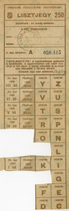 Érdekes, hogy a jegy papírján és a tintával nyomott felületén is még az egy évvel korábban „leváltott” Kossuth-címer látható a búzakalászos-vöröscsillagos Rákosi-címer helyett – nyilván ebből volt raktáron.